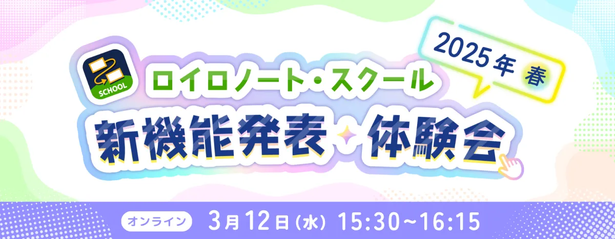 私たちLoiLoは、新たな教育の可能性を開くため、2025年3月12日(水)に「新機能発表・体験会 2025年春」をオンラインで開くことが決定しました。このイベントは、2024年9月以降に追加されたロイロノート・スクールの新機能を、じっくり体験できる貴重な機会です。参加費は無料なので、是非この機会にお申し込みください。