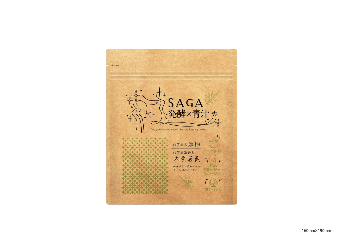 日本酒造りの副産物として名高い酒粕には、ビタミンB群やペプチド、食物繊維、アミノ酸、生きた乳酸菌など、現代人に必要なさまざまな栄養素が詰まっています。こうした健康的な要素を日常生活に取り入れるべく開発されたのが、『酒粕青汁』です。主な原料には、佐賀県嬉野産の大麦若葉が使われており、その栄養価の高さを酒粕パウダーとブレンドしています。