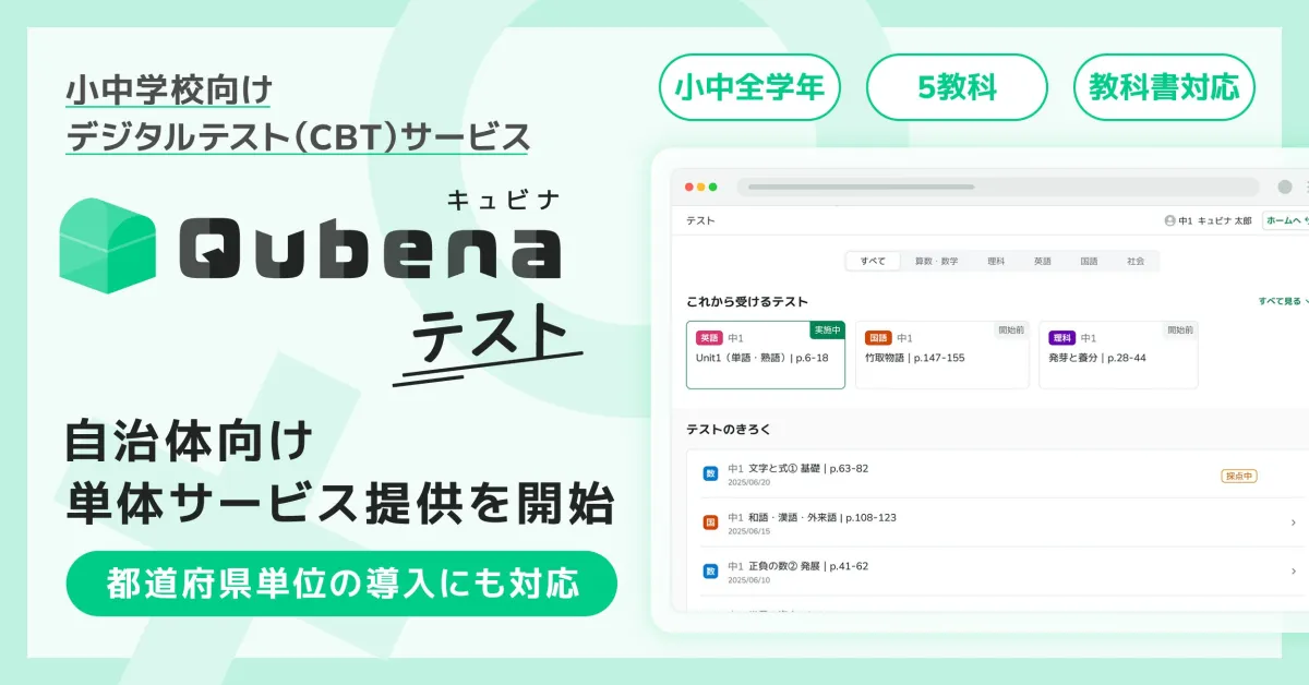 株式会社COMPASSが小中学校向けのデジタルテストサービス「キュビナ テスト」を2026年度より自治体向けに単体サービスとして提供開始することを発表しました。このサービスは、学習eポータル + AI型教材「キュビナ」の導入に関係なく利用が可能であり、特に自治体単位での導入もサポートします。