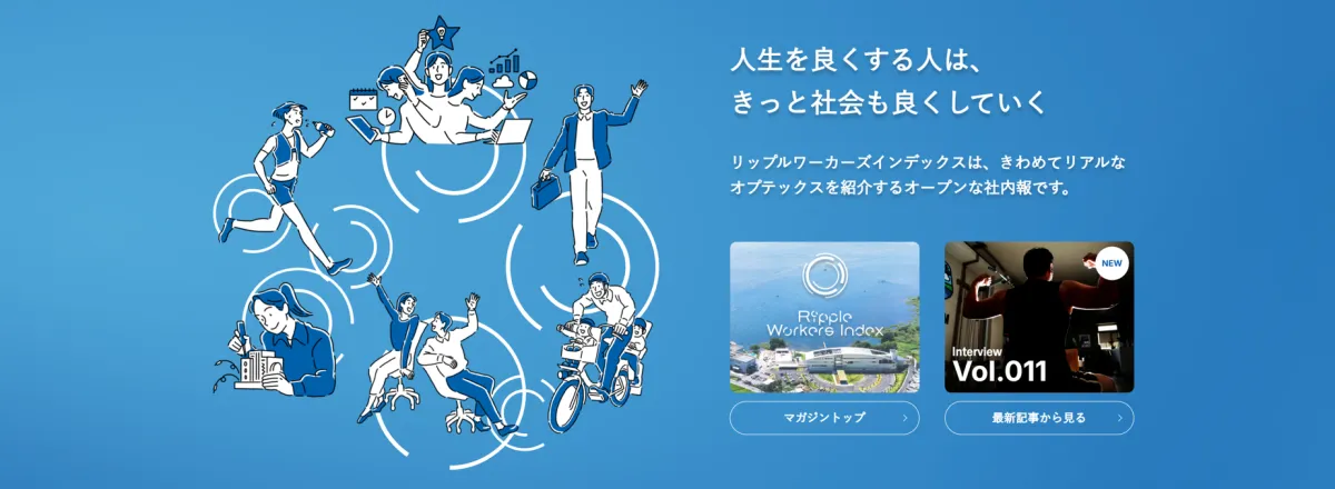 『Ripple Workers Index』は、オプテックスが推進している「Ripple Work」の理念に基づき、社員の価値観や仕事観、キャリア成長を深く掘り下げ、紹介するための情報発信手段です。この社内報は、経営理念や企業文化を視覚化し、社内外で共有することを目的としています。
