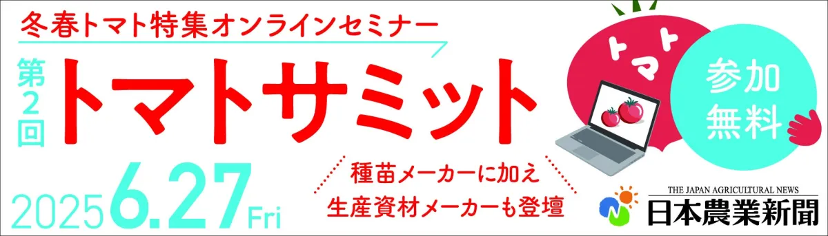 今年もトマト農家の皆さん必見のイベント「第2回トマトサミット」が近づいてきました。株式会社日本農業新聞が発行した「冬春トマト特集」と合わせ、最新情報が一堂に集まる機会です。特に、トマト生産に関心がある農家の方々には、非常に貴重な情報を得るチャンス。