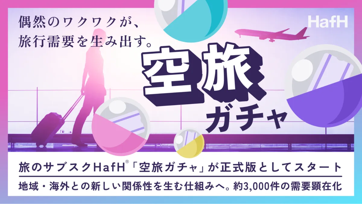 2023年3月、旅行のサブスクリプションサービス「HafH(ハフ)」が新たにリリースした「空旅ガチャ」。このサービスは、偶然性を楽しむ旅のスタイルを提案しています。ガチャを回すことで国内外の航空券や宿泊に使えるHafHコインが当たる仕組みで、旅の計画をより自由かつ柔軟にすることができます。