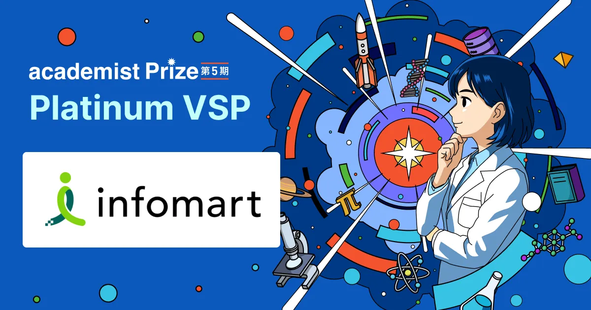 デジタル技術により業務を効率化する株式会社インフォマート(本社:東京都港区、社長:中島 健)は、アカデミスト株式会社が主宰する「academist Prize 第5期」に協賛し、『Platinum Vision Sharing Partner』として若手研究者の支援を行っています。この取り組みは、インフォマートの経営理念である「世の中の役に立つ」ことに繋がっており、研究者と社会をつなぐ架け橋となることを目指しています。