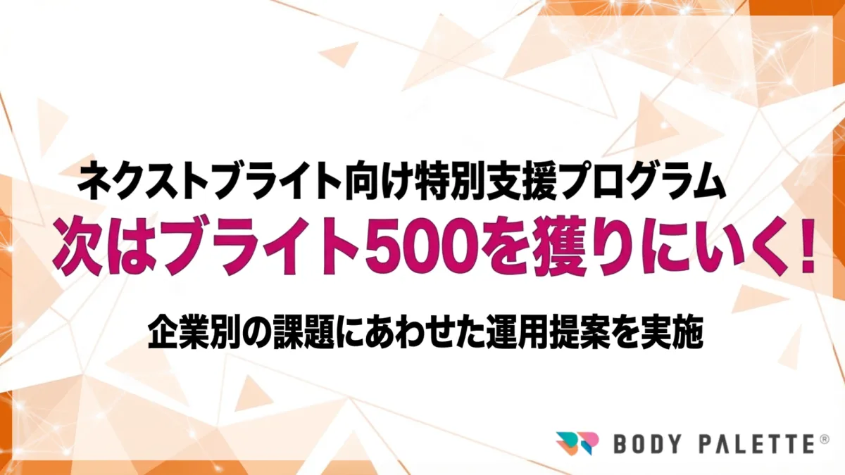 ネクストブライト応援プログラムを利用して、次年度はぜひブライト500の仲間入りを果たしてみてはいかがでしょうか。