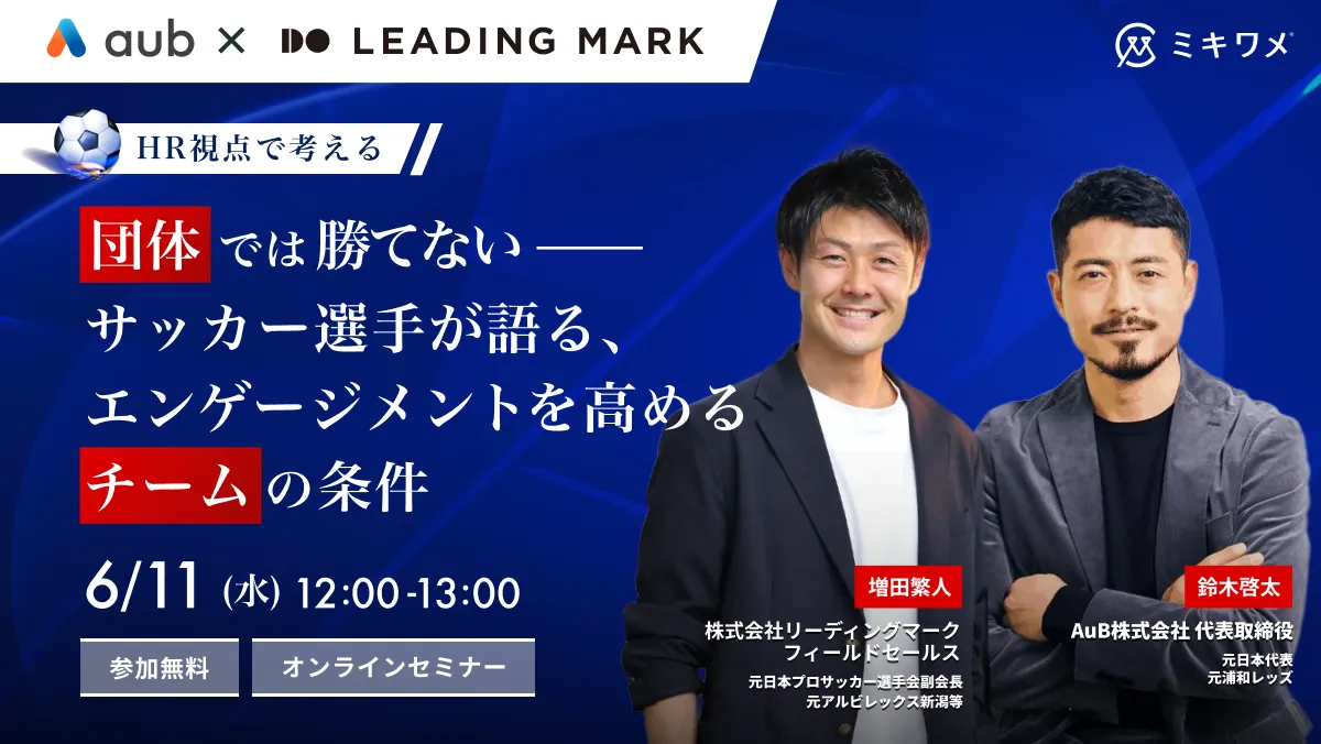 2025年6月11日、オンラインで開催されるセミナー『HR視点で考える『団体』では勝てない』では、元サッカー日本代表の鈴木啓太氏と元プロサッカー選手・増田繁人氏が登壇します。彼らはスポーツ界での豊富な経験を活かし、今のビジネスシーンにおいても役立つチーム作りやエンゲージメントの重要性について語ります。