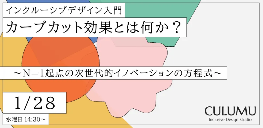 2026年1月28日(水)14時30分から、インクルーシブデザインスタジオCULUMU主催のオンラインセミナーが開催されます。このセミナーでは、「N=1起点の次世代的イノベーションの方程式」というテーマのもと、カーブカット効果のメカニズムを解説します。