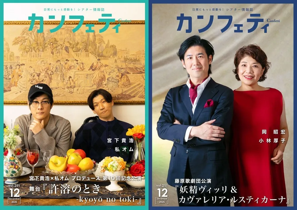 シアター情報雑誌「カンフェティ」の12月号が、2025年11月3日に発行されます。東京・新宿区を拠点に活動するロングランプランニングが手掛け、常に新しいエンターテインメント情報をシェアしています。「エンタテインメントを、もっと身近なものに。」を理念に掲げ、劇場やショップ、駅などの約1,500か所で配布されるこのフリーペーパーは、演劇からミュージカル、伝統芸能、コンサートに至るまで様々なライブエンターテインメントの魅力を伝えています。