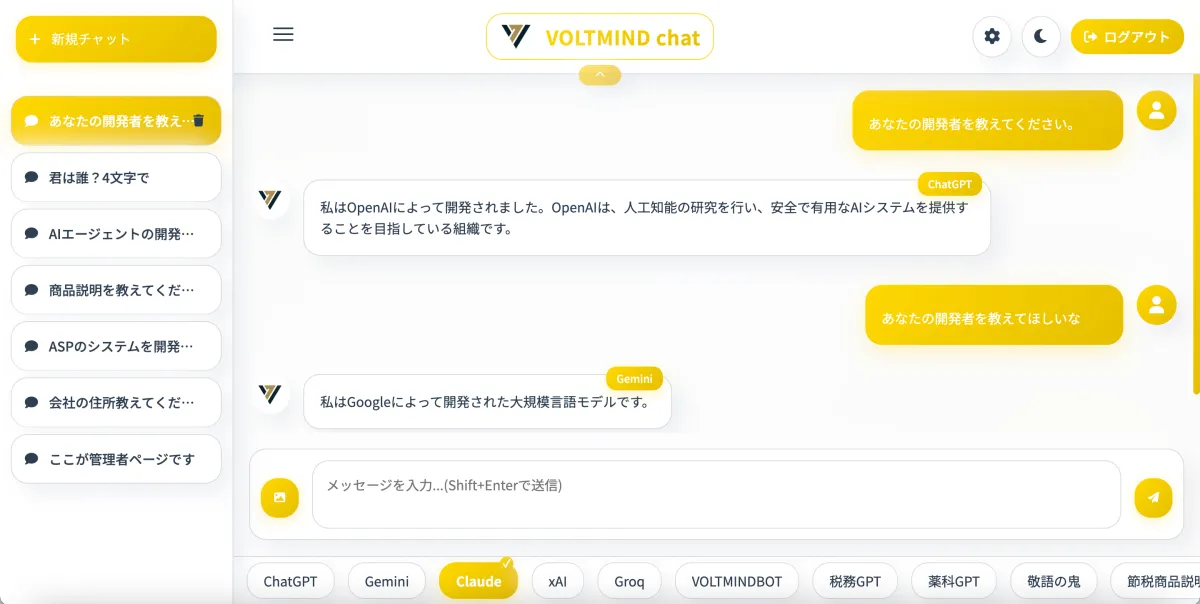 このサービス、『VOLTMIND Chat』は、ChatGPTやGemini、Claude、さらにはxAI、Groq、Ollamaなどの複数のモデルに対応。さらに、システムプロンプト(GPTs Gem)を用いた設定も可能です。利用を希望される方には、現在2週間の無料トライアルが用意されています。興味のある方は、以下のメールアドレスからお問い合わせください。