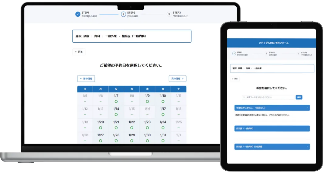 特に注目すべきは、各診療科で異なる受付フローや予約要件にも対応可能である点です。このフレキシブルな設計により、各診療科が自身の運用ルールにしたがって適切に機能できます。