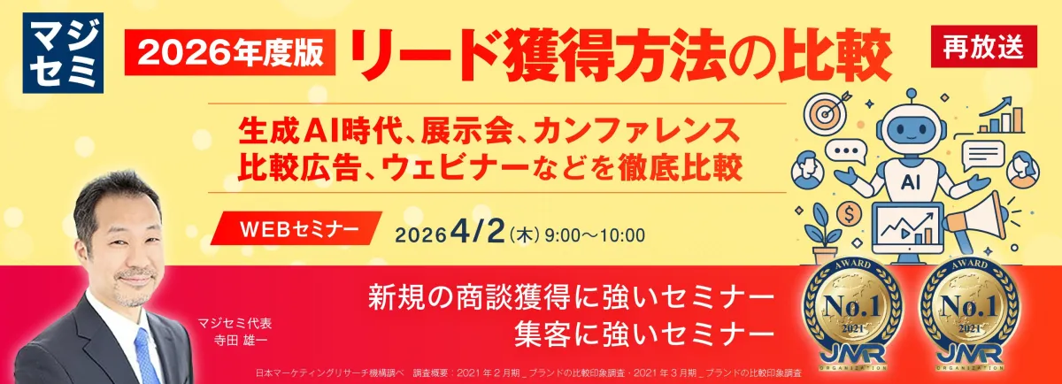 このウェビナーでは、展示会やカンファレンス、比較広告、ウェビナーなどの主要なリード獲得チャネルを俯瞰し、それぞれの特徴や活用場面を整理します。生成AI時代のリード獲得の現状を踏まえた上で、各手法の長所と課題を比較検討することで、参加者が自社にとって最も効果的なチャネル戦略を考える機会を提供します。