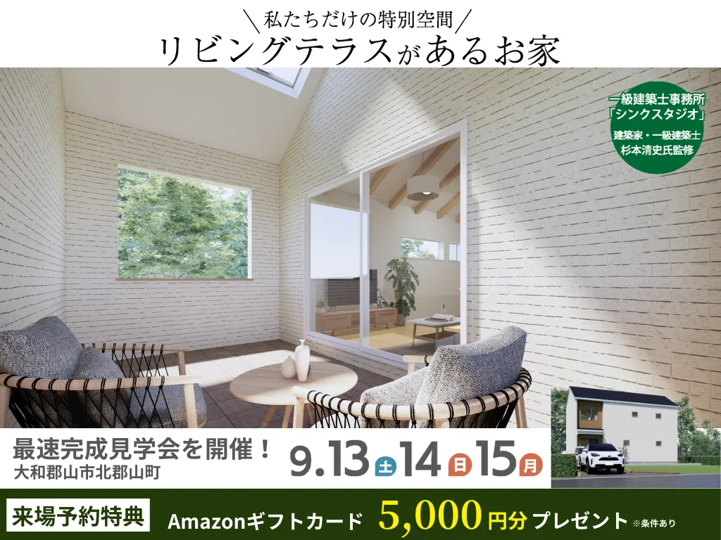 見学には事前予約が必要で、さらにご参加頂いた方にはアマゾンギフト券プレゼントキャンペーンも実施中です。この機会に新しい暮らしの形を感じていただければ幸いです。