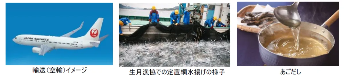 約30種類の平戸の特産品が販売される予定で、あご関連商品に加え、地元名物の「川内かまぼこ」や「ヒラメの昆布締め」、「カスドース」なども取り揃えます。これらの商品は、イベント前日の23日に平戸市から長崎空港に搬入され、JALのフライトで羽田に運ばれます。イベント終了後も、これらの特産品は「SORAKARA OTODOKE」で購入可能になります。