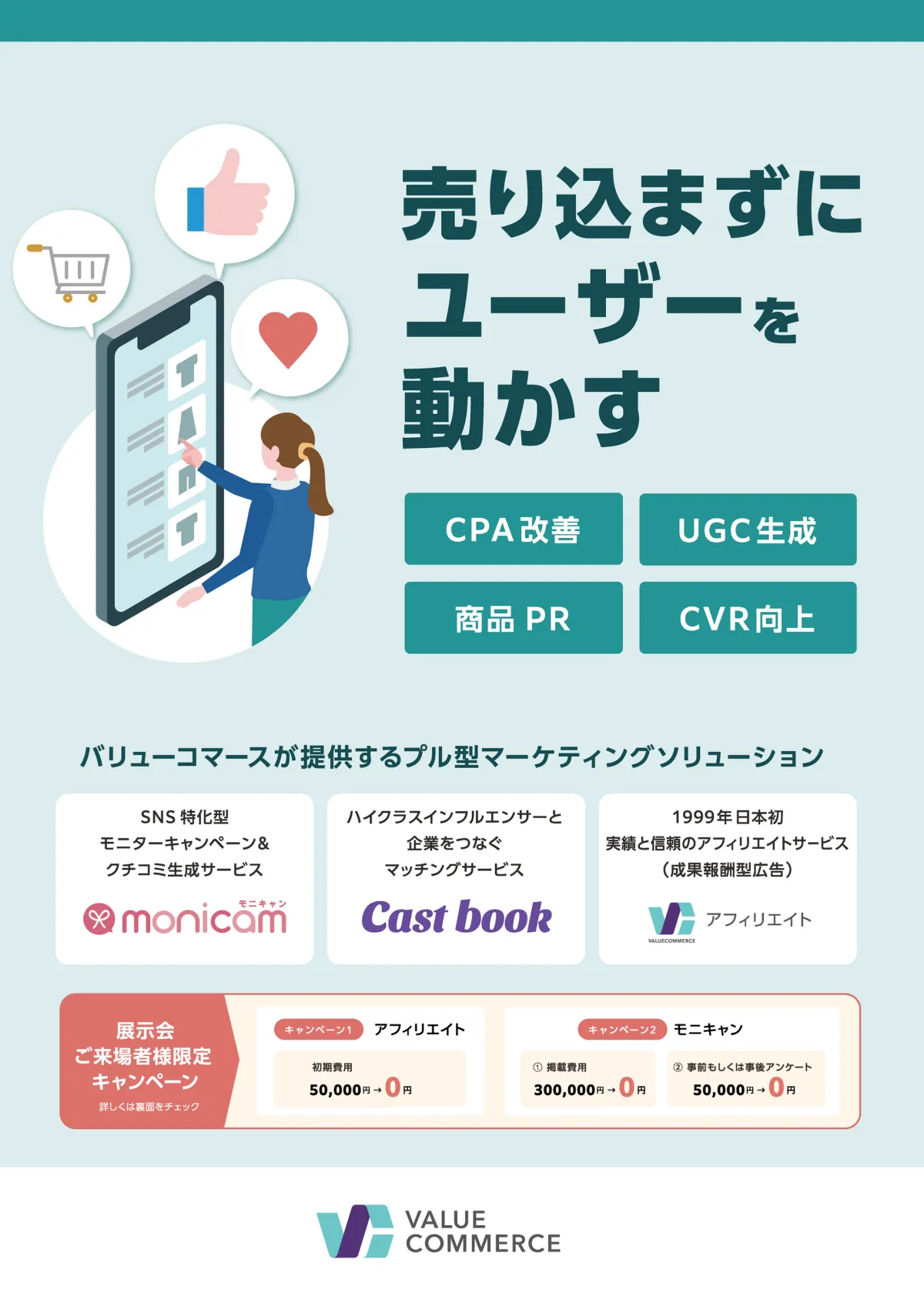 バリューコマースは、多様な収益モデルを駆使して、余分なコストを削減しながら、顧客の持続的な成長を後押しすることを使命としています。皆様のご来場を心よりお待ちしています。