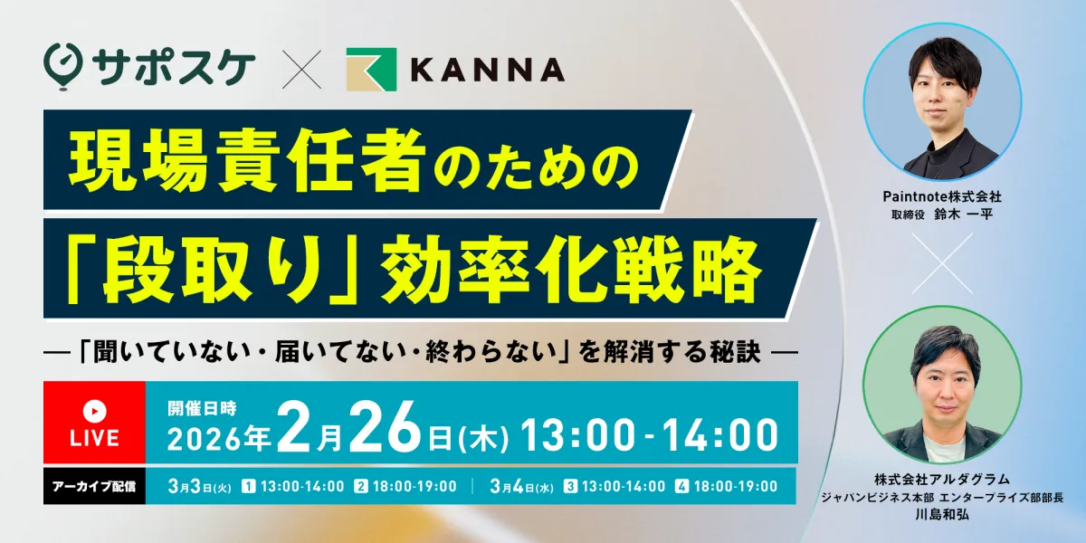 2026年2月26日、株式会社アルダグラムとPaintnote株式会社は、オンラインセミナー「現場責任者のための『段取り』効率化戦略」を共催します。このセミナーは、現場管理での課題を抱える管理者や担当者の方々を対象とし、効率的な業務運営のための知見を提供することを目的としています。セミナーへの参加は、業界の役職者や関係者にとって絶好の情報共有の機会となるでしょう。