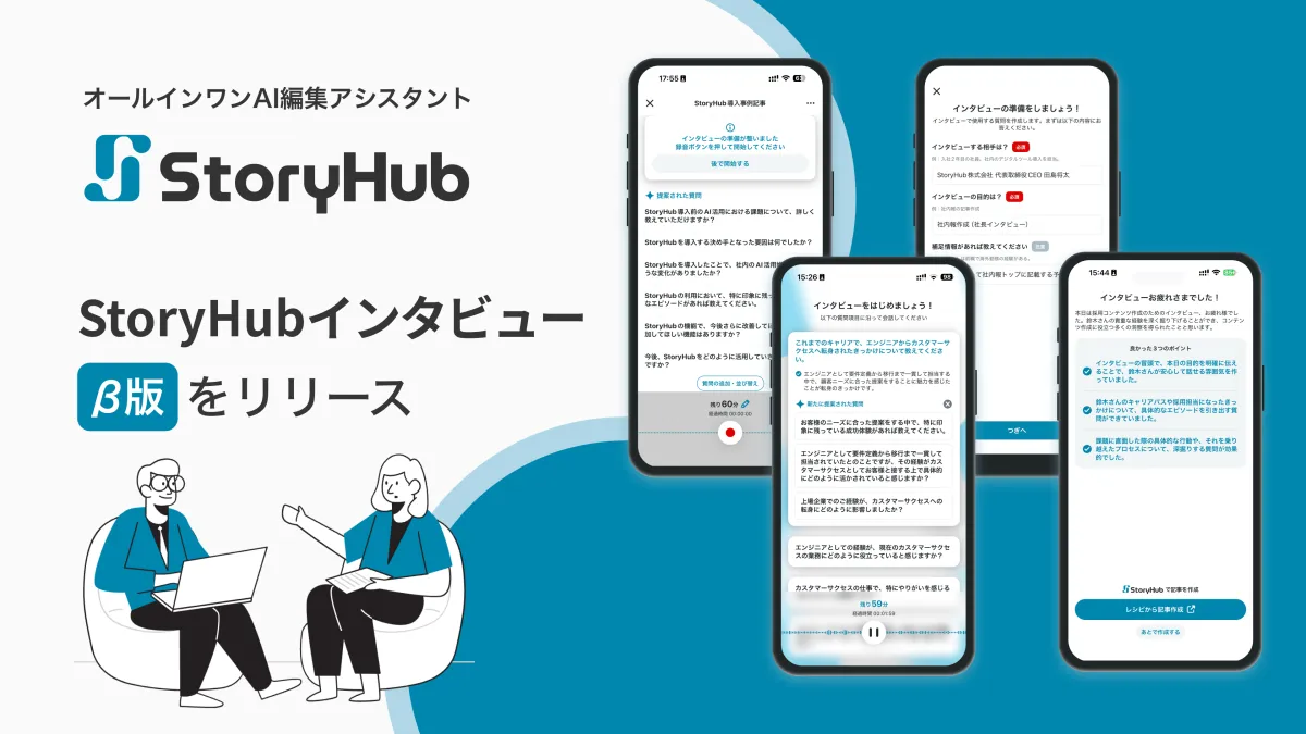 StoryHub株式会社が、新たにリリースした「StoryHubインタビュー」アプリ(β版)は、スマートフォン一つで高品質なインタビューが実現できる全く新しいツールです。AIの力を活用したこのアプリはインタビューの準備から実施、その後の記事作成までを包括的にサポートしてくれます。