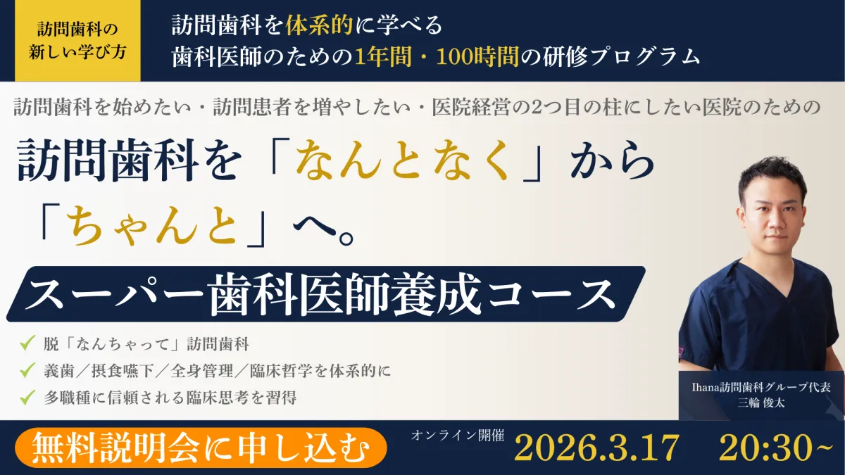 この取り組みに関心のある院長や歯科医師を対象に、無料オンライン説明会が開催されます。日時は2026年3月17日(火)20:30〜21:30で、参加費は無料です。興味のある方は、こちらの