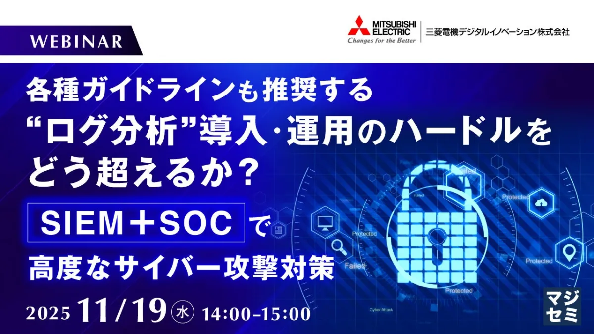 近年、サイバー攻撃の手法は進化し続け、ランサムウェアやサプライチェーン攻撃、ゼロデイ攻撃などが増加しています。これに対抗するために、従来のファイアウォールやIPS/IDSだけでは限界があることが明らかになっています。そこで注目されるのが、ログ分析の重要性です。ログ分析は、様々なセキュリティ機器やネットワークのログを集め、異常な行動を可視化する手段として、サイバー攻撃対策において欠かせないものとなっています。このような背景を受け、三菱電機デジタルイノベーションが開催するウェビナーでは、ログ分析の導入と運用に関する具体的な課題や解決策が紹介されます。