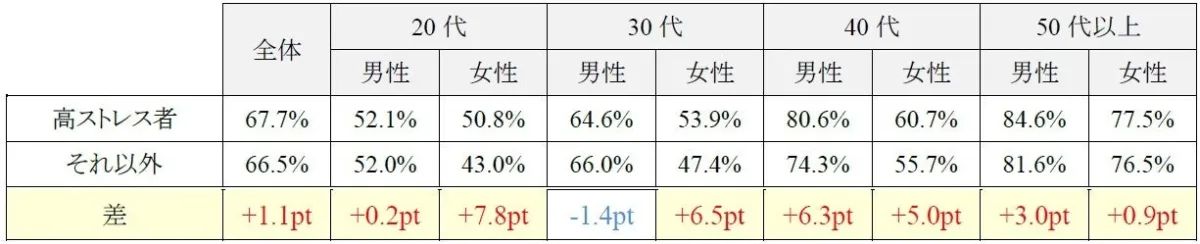 調査の結果、高ストレスと診断された従業員は、健康診断における「有所見率」が高いことが明らかになりました。高ストレス者とは、心の健康状態が悪化している可能性が高いとされ、医師の面談が必要とされる人々を指します。