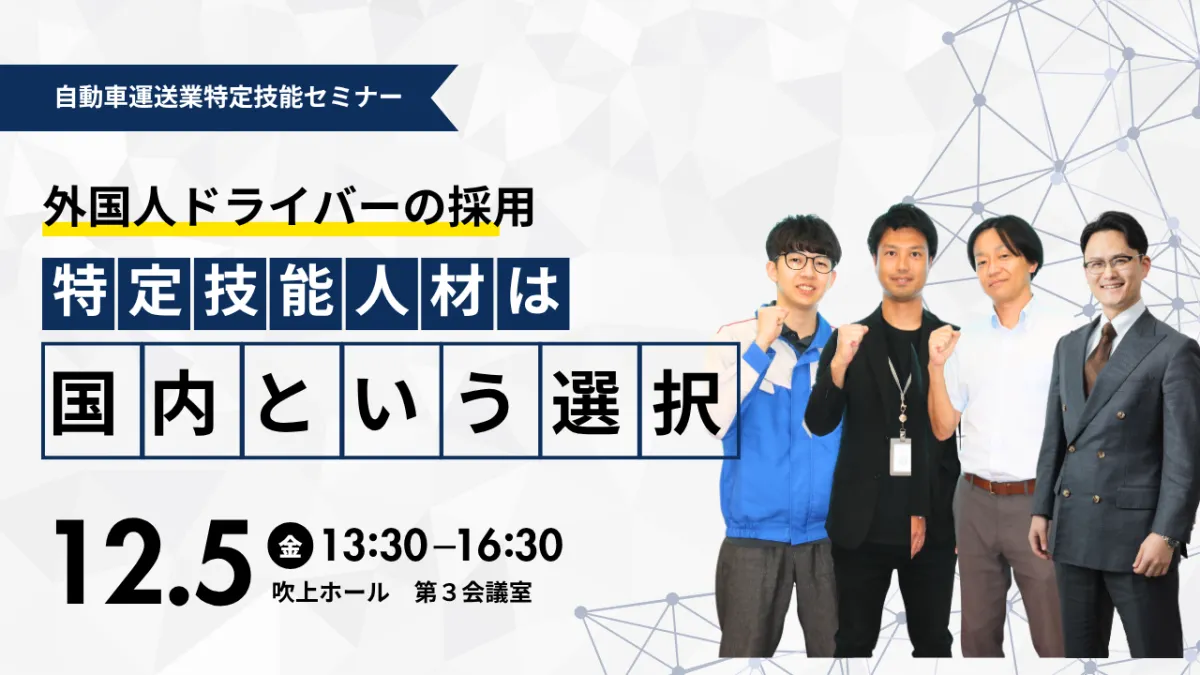 物流業界の人手不足問題は深刻で、特にドライバーの求人においては事態が急速に悪化しています。その解決策として最近注目を集めているのが、外国人ドライバーの活用です。国内に在住する特定技能者の導入を促進する目的で、2025年12月5日に名古屋でセミナーが開催されます。このセミナーでは、特定技能「自動車運送業」の制度に関する基本的な情報から、他社には味わえない、株式会社メイクワンの独自の採用方法や教育方針まで、幅広く解説される予定です。