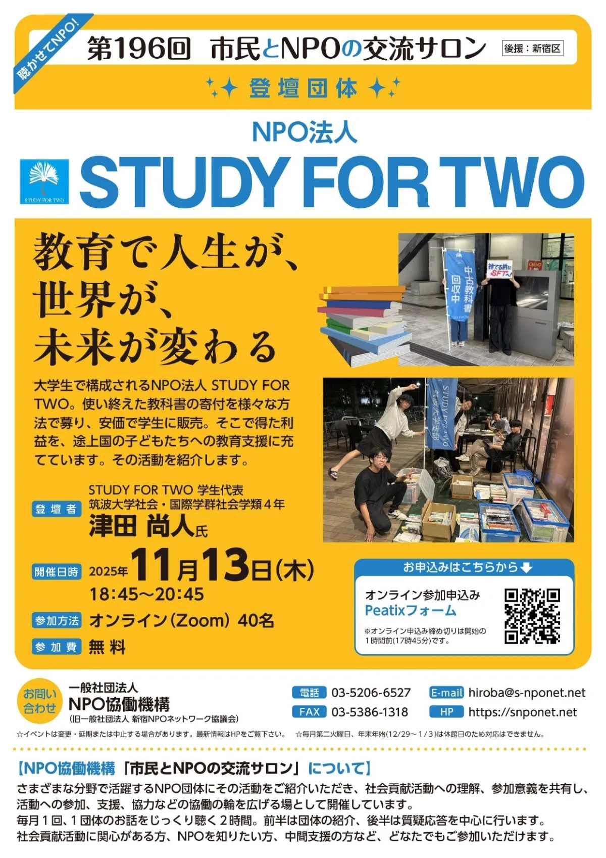 Wiki3: 東京都 新宿区 社会貢献活動 NPO法人STUDY FOR TWO 市民交流