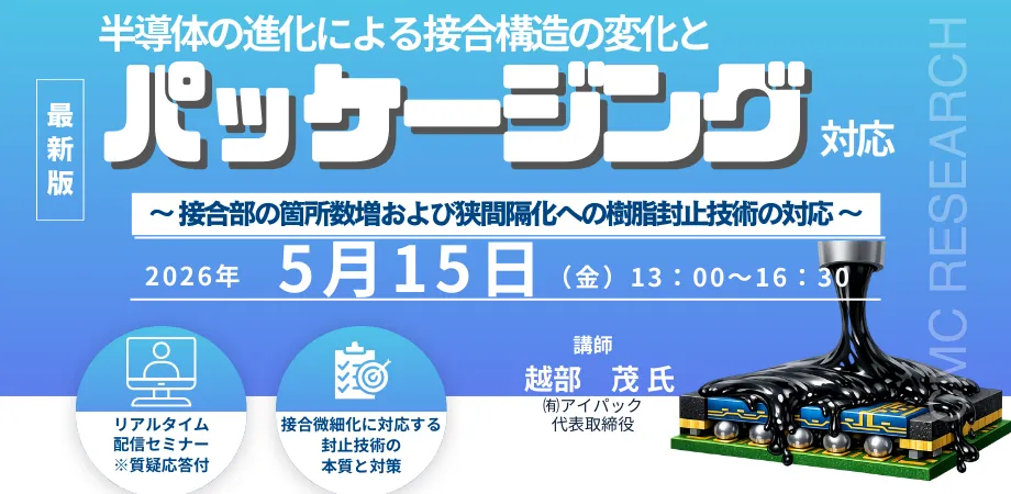 半導体産業は進化を続け、多様なニーズに応えるために、新しいパッケージング技術が求められています。2026年5月15日(金)に、(株)シーエムシー・リサーチ主催のウェビナーが行われます。このセミナーでは、半導体の接合構造の変化や、それに対するパッケージング技術の対応について掘り下げて議論します。