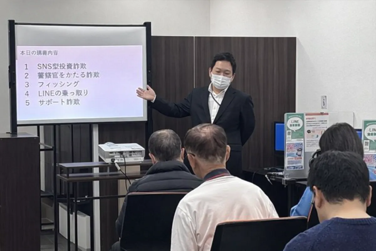 「スマホ安全セミナー」は、東東京都江戸川区の直営校「ラパーク瑞江校」で実施されました。参加は無料で、教室の生徒のみならず、一般の地域住民も募り、幅広い層に参加していただきました。また、講師は警視庁サイバーセキュリティ対策本部から派遣され、最新の詐欺手口についての情報を提供しました。