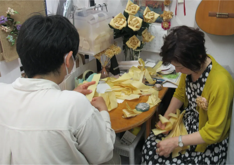 この取り組みでは、RESPECの利用者を対象に月に一度、Lino Linoが運営する「かんなフラワーアート」専門店「Salon de Lino Lino」での体験支援を行っています。このワークショップでは、参加者がフラワーアートに触れ、簡易作業として部材のカットなどを通じて実際の店舗での作業環境を体験します。