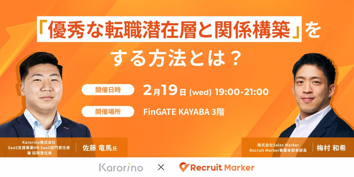 今回のイベントでは、Karorino株式会社の佐藤竜馬氏が登壇し、転職市場における新たなアプローチとその効果を語ります。特に、候補者のインテントをより正確に把握し、効果的なアプローチを行うための手法について深掘りします。