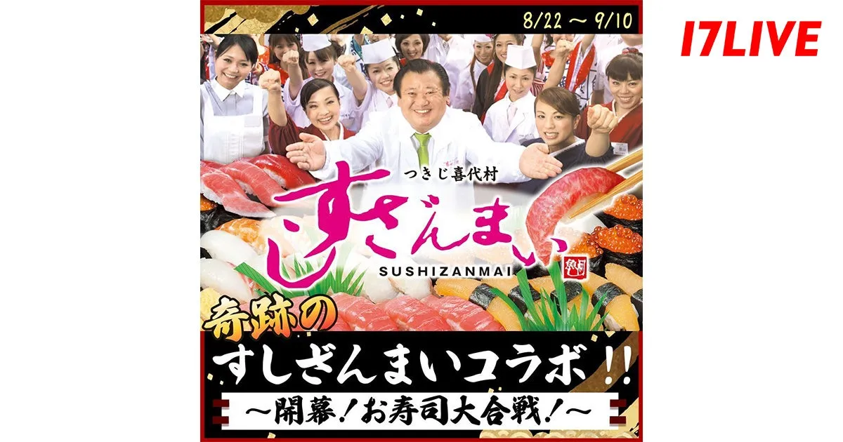 2025年、夢のコラボレーションが実現しました!日本全国で広く愛されている寿司チェーン『つきじ喜代村すしざんまい』が、ライブ配信アプリ『17LIVE(イチナナ)』と手を組み、特別なイベント『奇跡の「すしざんまい」コラボ!!〜開幕!お寿司大合戦!!〜』を開催します。このイベントは、8月22日から9月10日までの期間で、すべての「17LIVE」ユーザーが参加可能です。