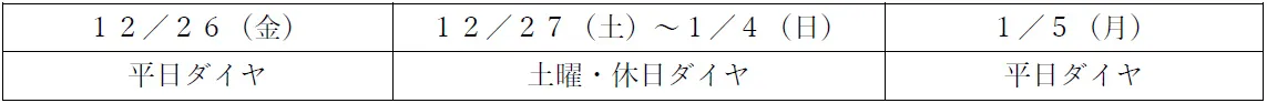 年末年始の鉄道運行
