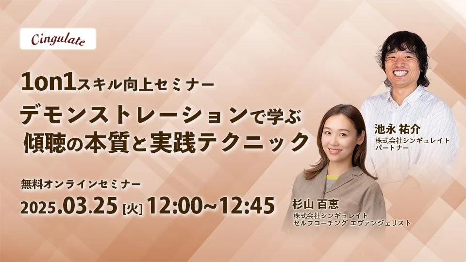 今回のセミナーでは、1on1の実践的なスキルを学び、組織の成長に繋げるためのヒントを得る絶好の機会です。ぜひ、奮ってご参加ください。