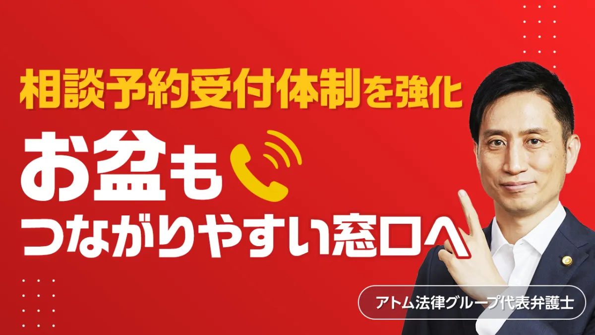 交通事故は、被害者だけでなく、その家族にも大きな影響をもたらします。ましてや、周囲が休暇に入っているお盆期間には、孤独感や不安で一夜を明かす人もいます。そのような方々に寄り添い、少しでも早く安心を届けられるように、アトム法律事務所では24時間体制での相談予約を承ります。