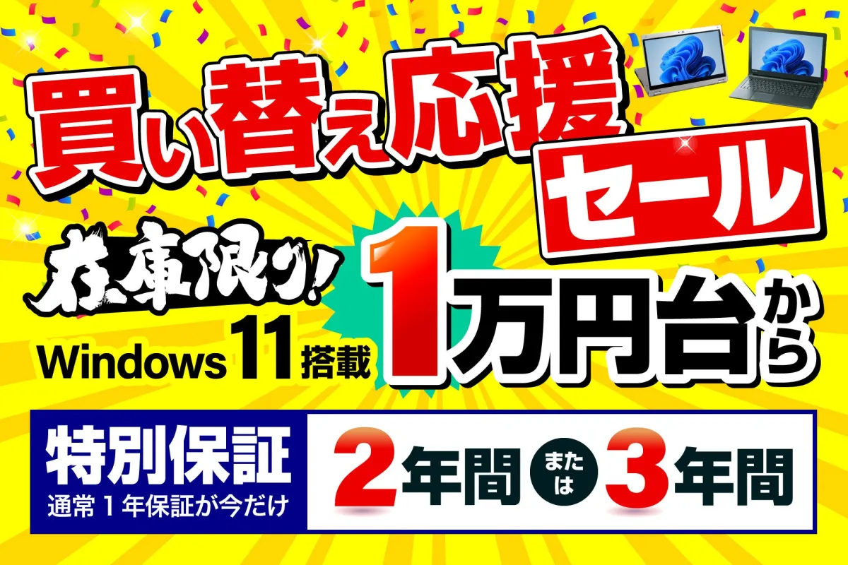 全国で中古パソコンの販売や修理を行っている「パソコン市場」は、Windows 10のサポートが2025年10月14日に終了するのを受けて、買い替えを応援する特別セールを開始します。このセールは2025年10月から実施され、ユーザーの安全で安心なパソコン環境の構築をサポートする内容となっています。