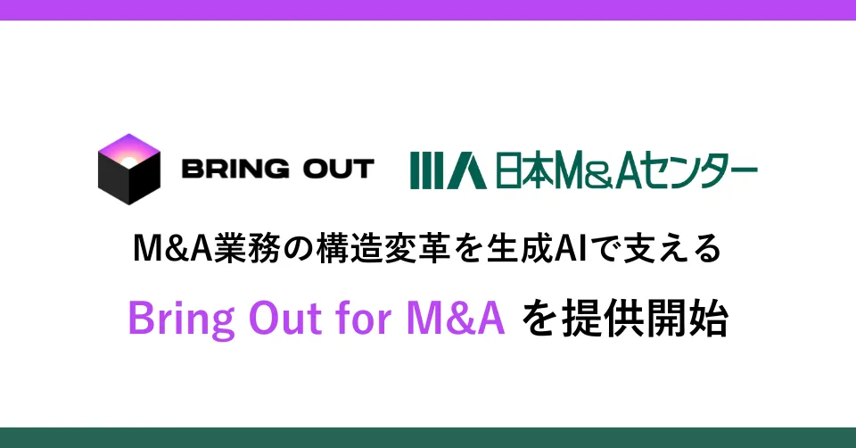 株式会社ブリングアウトは、業界のリーディングカンパニーである株式会社日本M&Aセンターとの共同開発で、新たなAIソリューション「Bring Out for M&A(β版)」を発表しました。この新しいツールは、M&A仲介業務の効率化と質の向上を目指し、業務全体における対話を起点に生成AIの活用を推進するものです。具体的には、譲渡企業や譲受け候補企業とのインタビュー、企業概要書の提案、M&A成約に向けたキックオフミーティングなど、多岐にわたるM&Aプロセスにおいて利用されます。