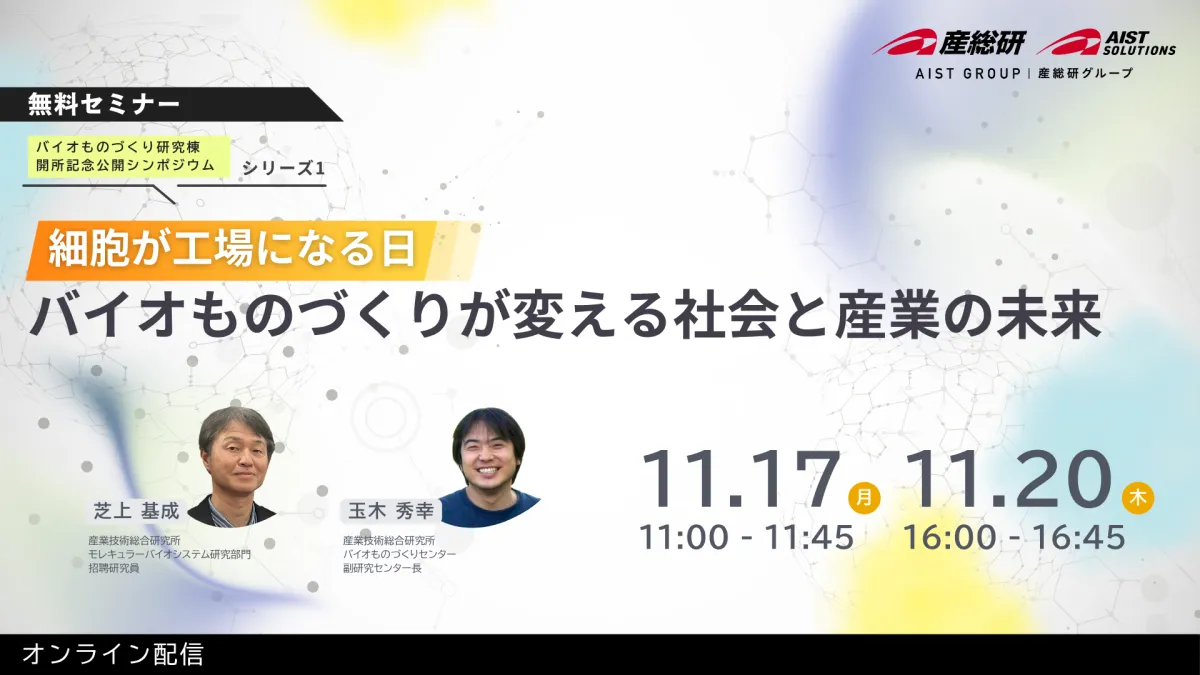 2025年11月、産業技術総合研究所に新たに設立されたバイオものづくり研究棟の開所を記念したシンポジウムが開催されます。このシンポジウムは、画期的なバイオ技術の最新の研究を知る絶好の機会です。また、これは無料でオンライン配信されるため、全国どこからでも参加可能です。