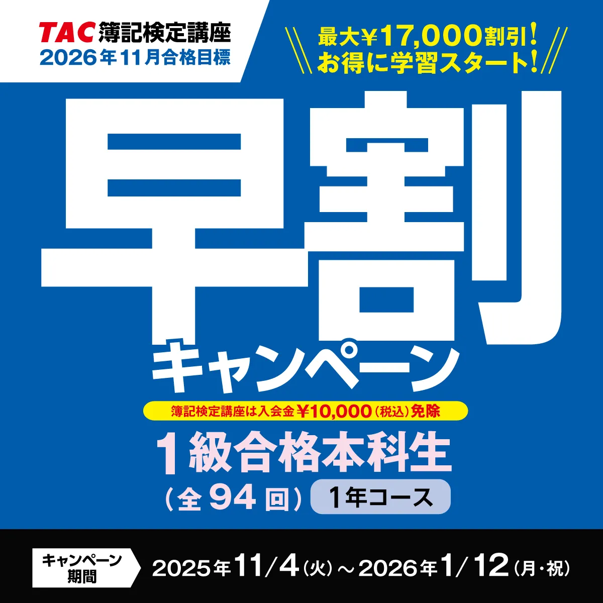 TAC株式会社が展開する日商簿記検定対策講座は見逃せない存在です。特に、現在実施中の「1級早割キャンペーン」は、受講者に最大17,000円の割引を提供し、さらに先行学習特典も用意されているため、これから簿記1級合格を目指す方には嬉しいお知らせです。