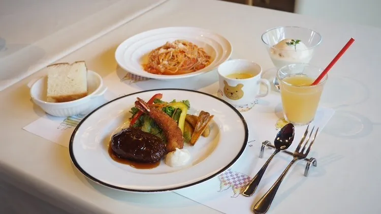 - - 内容:コーンスープ、選べる2種類のパスタ、淡路牛ハンバーグ、サラダ、フォカッチャ、アイスクリーム、ドリンク(アップルまたはオレンジ)
