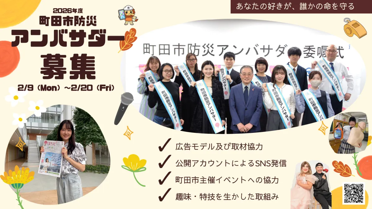 募集は2026年2月9日(月)から2月20日(金)まで行われます。興味がある方は、町田市公式ウェブサイトの「まちだ防災カレッジ」ページから申し込みが可能です。アンバサダーとして活動する期間は2026年4月1日から2027年3月31日までの1年間です。