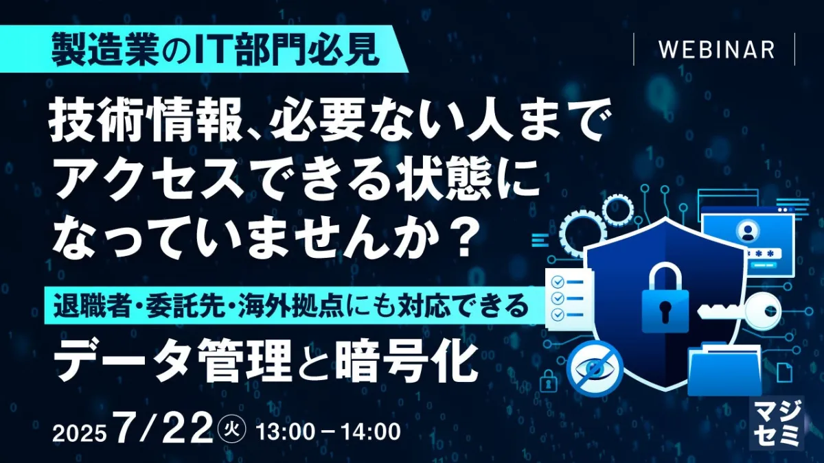 近年、製造業において技術情報の漏洩が企業の存続を脅かす重大なリスクとなっています。設計図面や3D CAD、試作仕様書などの技術資料は、企業の競争優位を確保する上で欠かせない資産ですが、その保護は非常に難しくなっています。この問題に対処すべく、最近ウェビナーが開催されました。このイベントでは、製造業者が直面する情報流出のリスクと、それに対する具体的な対策が議論されました。