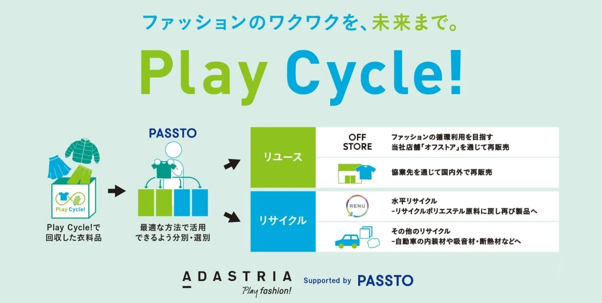 再生される衣類の一部は大手商社の伊藤忠商事が展開する「RENU」を通じて再生ポリエステルに生まれ変わり、アダストリアの製品に利用されることも期待されています。