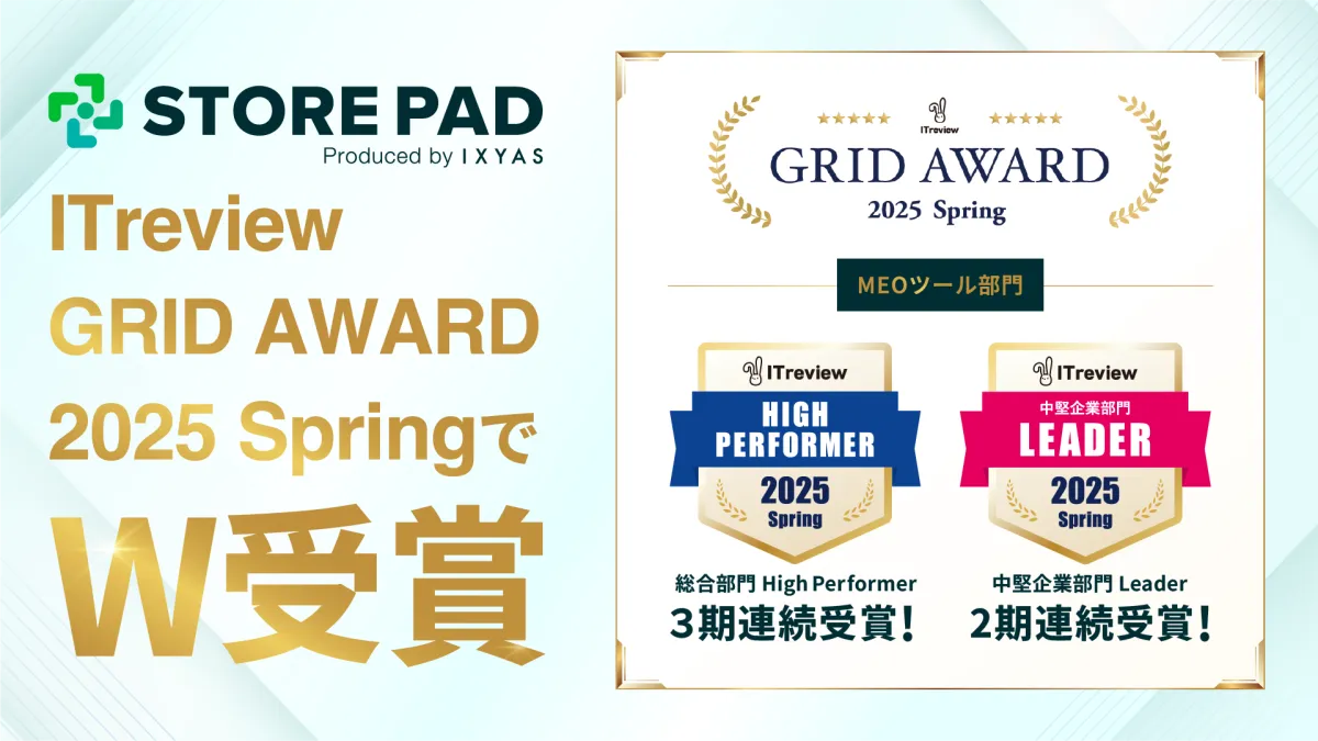店舗集客を効率化するためのAI SaaS「STOREPAD(ストアパッド)」が、ITreview Grid Award 2025春にて顕著な成果を収めました。特筆すべきは、総合部門での3期連続の「High Performer」受賞、さらに中小部門でも2期連続での「High Performer」受賞。そして、認知度や満足度の高い製品として「Leader」中堅企業部門でも2期連続で受賞しています。これにより、STOREPADの位置付けはより一層強固なものとなりました。