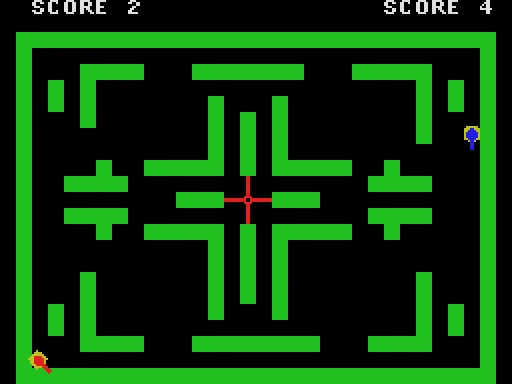 本作の特筆すべき点は、発射した誘導弾をプレイヤーが自在に行動させることができるという特徴です。これにより単調な攻撃から脱却し、さまざまな戦術を考えながら優位に立ち回る楽しさを味わえます。ゲームでは、9種類のステージがあり、それぞれのステージで異なる戦略や操作が求められます。相手のタンクに5回攻撃を命中させることで勝利となり、シンプルながらも奥深い対戦が展開されます。