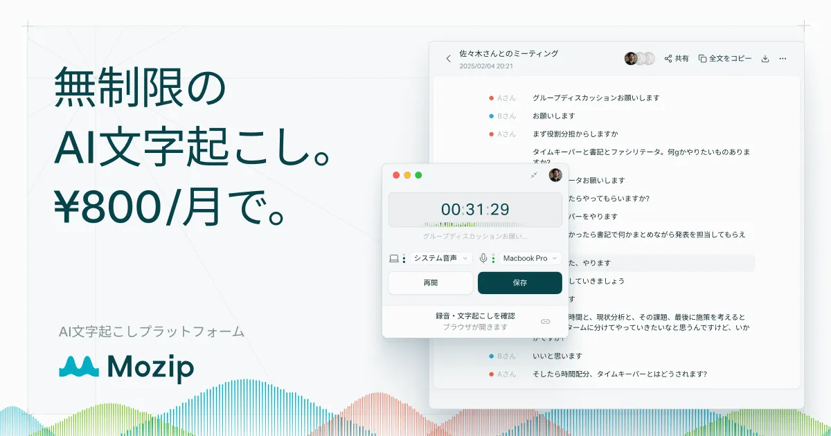 株式会社ENIAQが新たにリリースした「Mozip」は、月額800円で無制限のAI文字起こしが可能な画期的なサービスです。従来の手間のかかる文字起こし作業を一新し、コストを大幅に削減します。