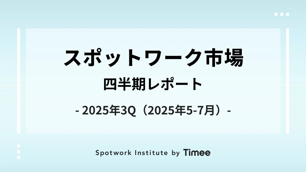 株式会社タイミーは、2025年第3四半期(2025年5月-7月)の「スポットワーク市場・クォータリーレポート」を発表しました。本レポートは、三大都市圏および地方における募集データを基に、募集件数、平均時給、労働時間などの分析を行ったものです。
