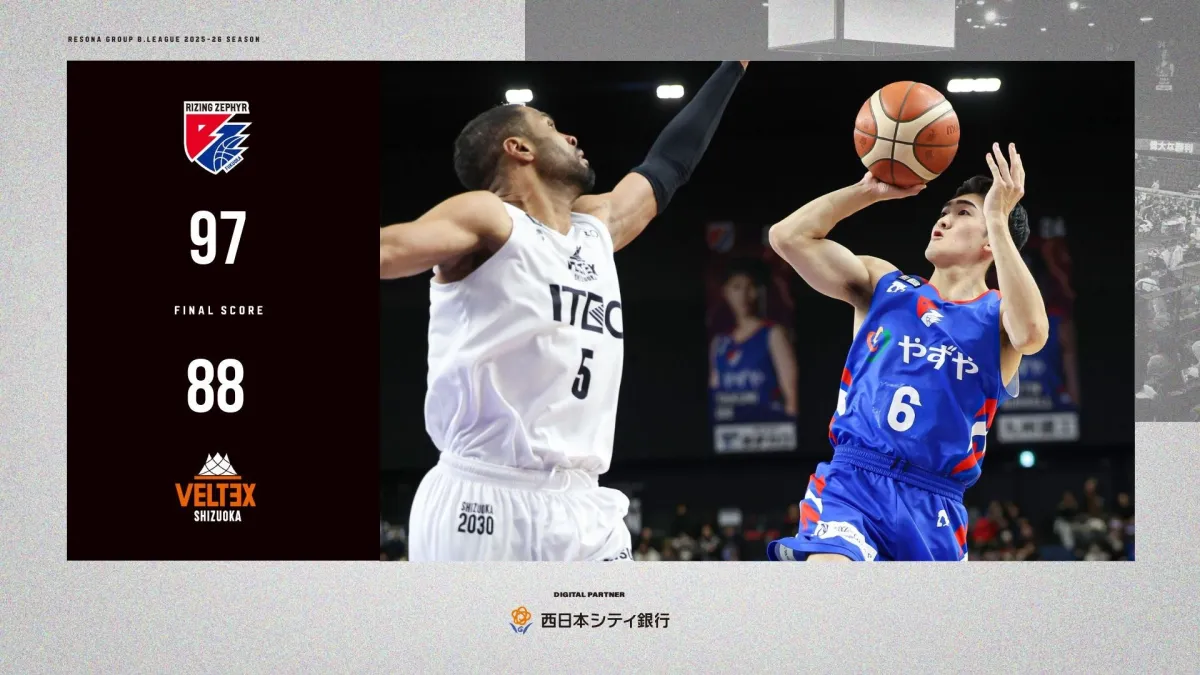 2025年12月28日、福岡で行われたB.LEAGUE 2025-26シーズンの試合において、ライジングゼファーフクオカがベルテックス静岡との対戦を97-88で制しました。この試合は福岡にとって年内最後の一戦であり、勝利で締めくくることができました。