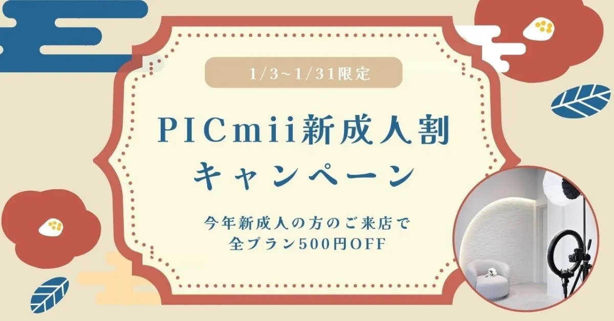 セルフ写真館『PICmii』が新成人を迎える皆様に向けた特別キャンペーンを実施します。「PLACOLE & DRESSY」を展開する冒険社プラコレがプロデュースする横浜店と名古屋店で、2025年1月3日から31日までの期間限定で「新成人割」をお楽しみいただけます。