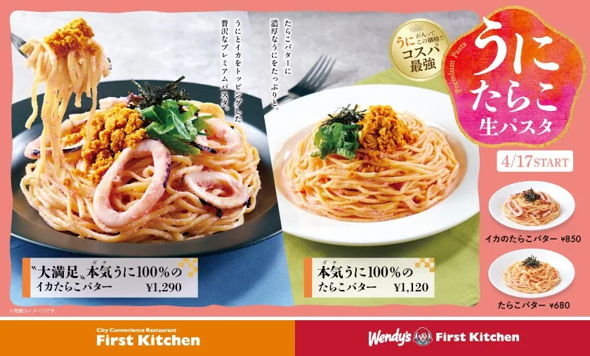 2025年4月17日(木)、ウェンディーズ・ジャパン株式会社とファーストキッチン株式会社から、待望の高級パスタ第2弾が発表されます。今回の新商品には、海の幸をふんだんに使用した「“大満足”本気(ガチ)うに100%のイカたらこバター」を含む新たな4品がラインアップされ、さまざまな味わいを楽しめるようになっています。