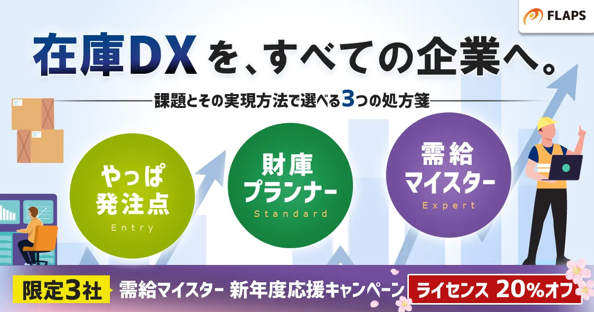 株式会社FLAPS(大阪市北区)は、企業の在庫管理を革新する『在庫最適化シリーズ』の展開に向けて新しいキャンペーンを発表しました。特に、在庫計画の「脱・属人化」を考えるこの時期に、企業のニーズに応じたソリューションを提供します。