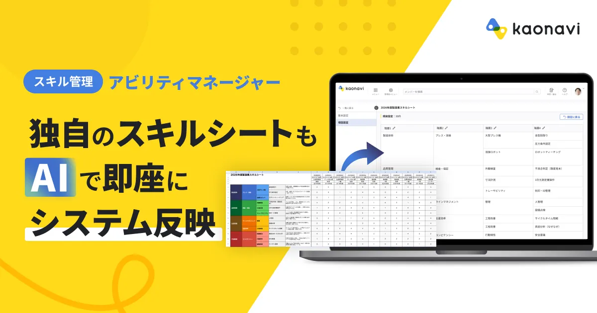 株式会社カオナビが提供するタレントマネジメントシステム「カオナビ」では、スキル管理のプロセスを大幅に効率化する新機能を発表しました。2026年3月9日より提供される「AIスキル項目取込」機能は、企業が独自に運用しているスキルシートをAIが自動で読み込み、スキル定義を瞬時に生成します。