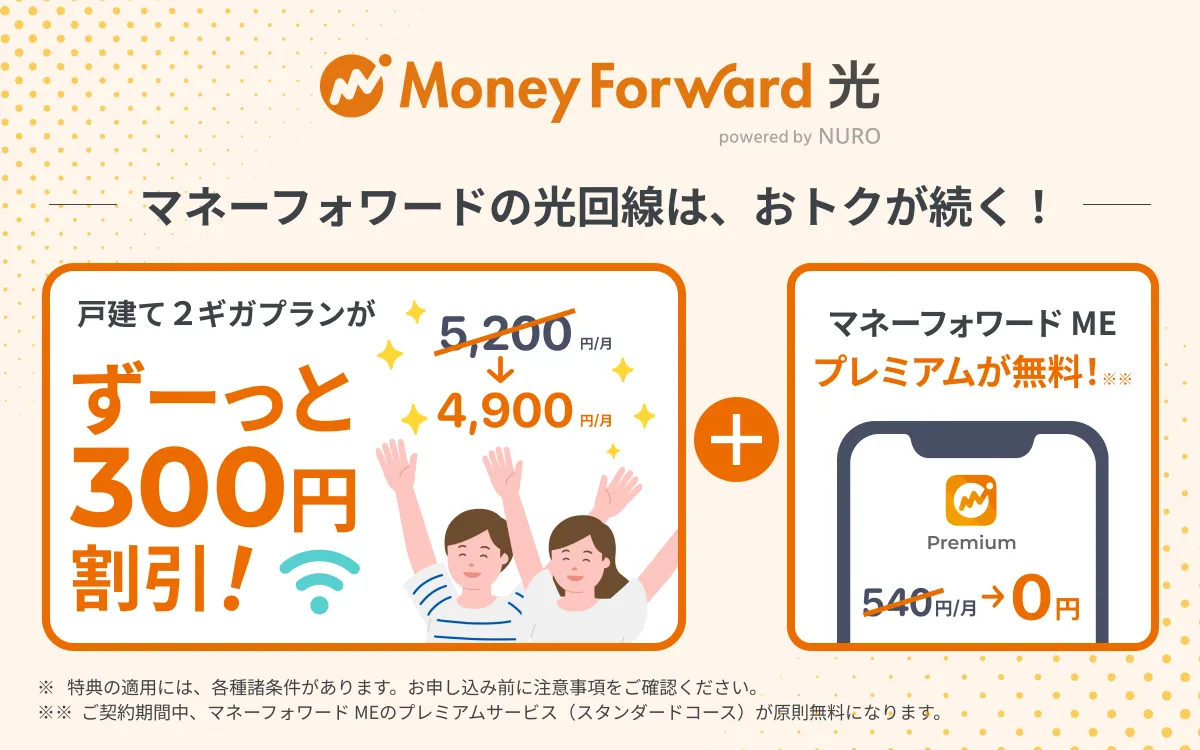 新たに導入された割引特典は「マネーフォワード光 powered by NURO」プランに適用され、通常の月額基本料金5,200円(税込)から、4,900円(税込)に引き下げられます。この割引は、2026年2月1日から新規申し込みを行った方が対象です。これにより、マネーフォワード光の戸建て向けプランは、他のプランの中で最も安価な選択肢となります。